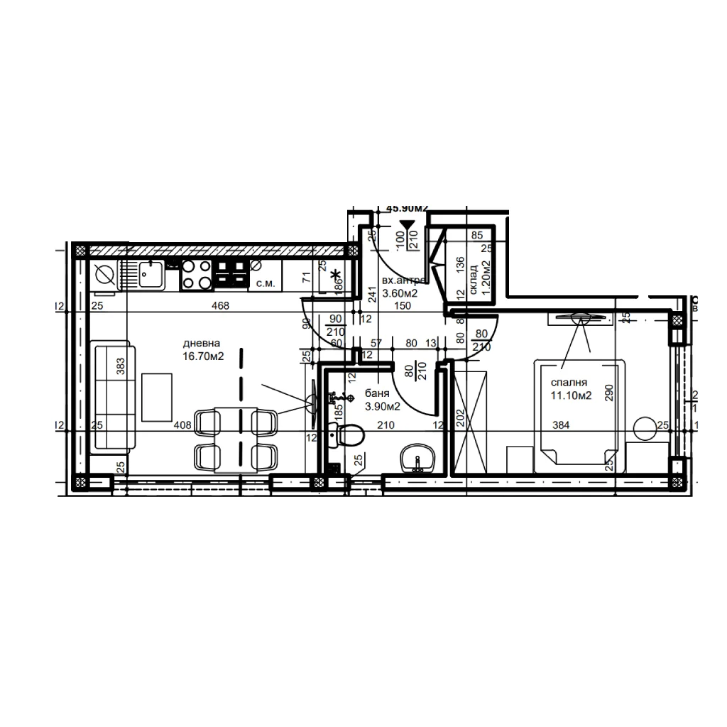 | Апартамент 2 Б | Б | Двустаен | 45.90 кв.м. | кв.м. | кв.м. | Свободен | ||