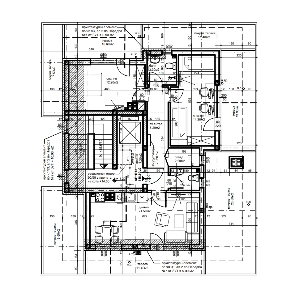 | Апартамент 12 Б | Б | Тристаен | 118.50 кв.м. | кв.м. | кв.м. | 92.20 кв.м. | Свободен | |