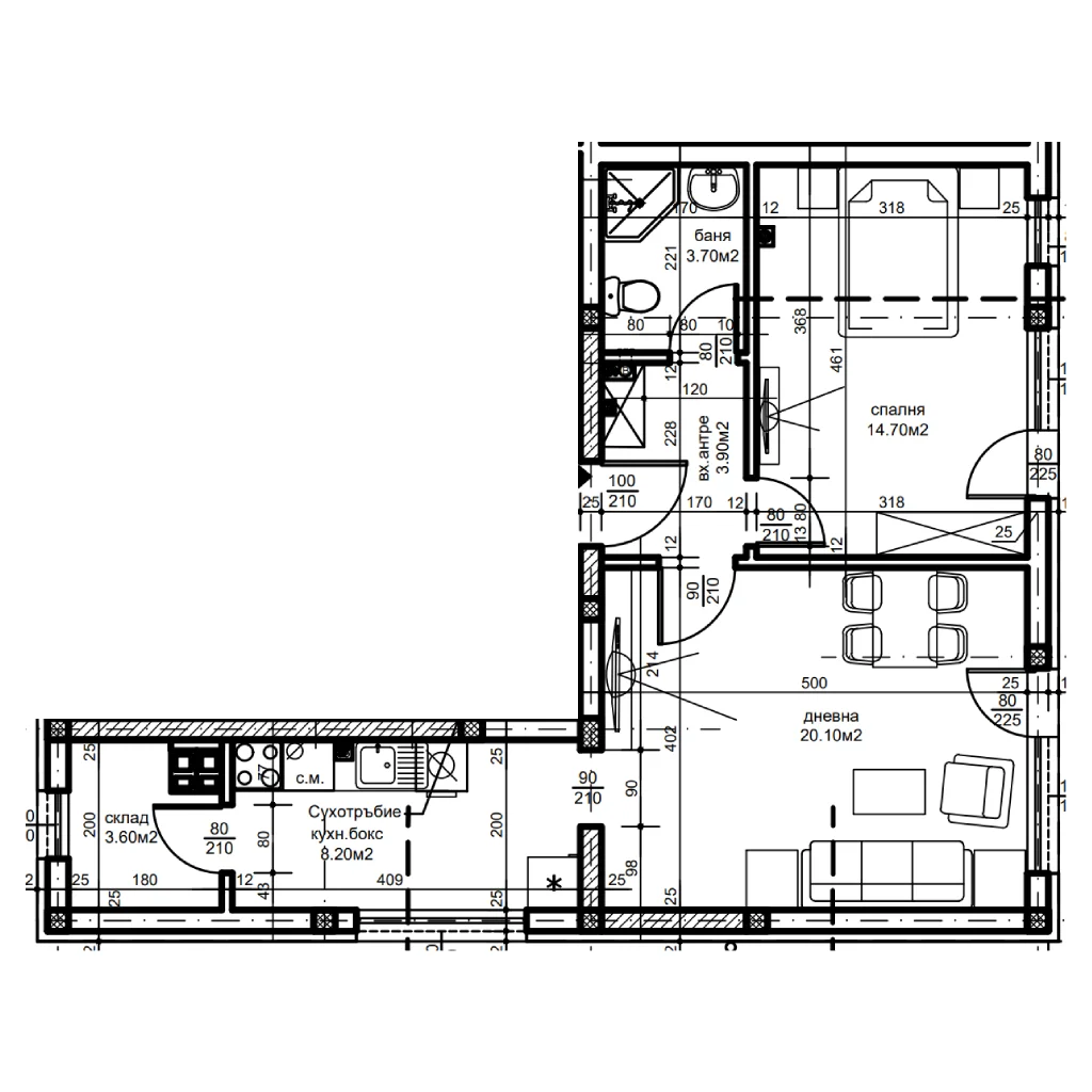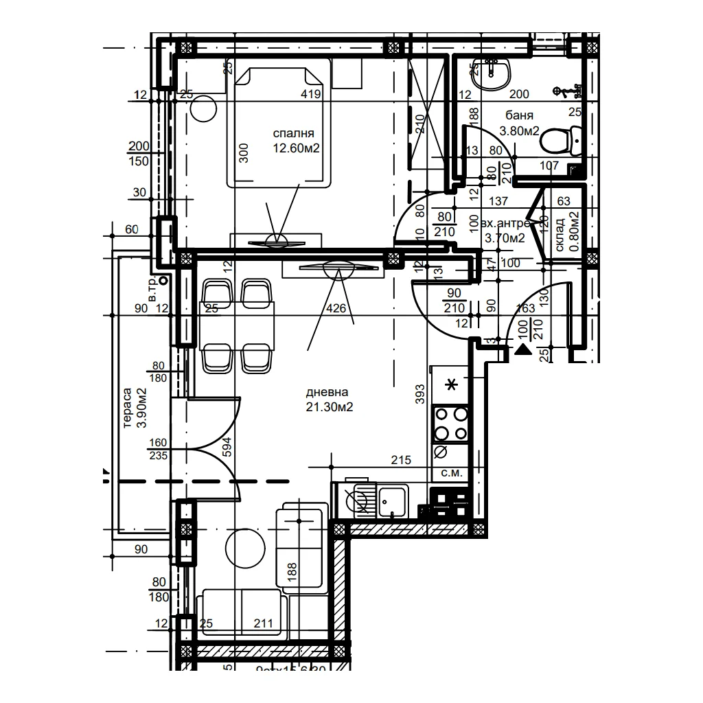 | Обект | Сграда | Тип | Застр.площ | Общи части | Обща площ | Веранда | Статус | |
