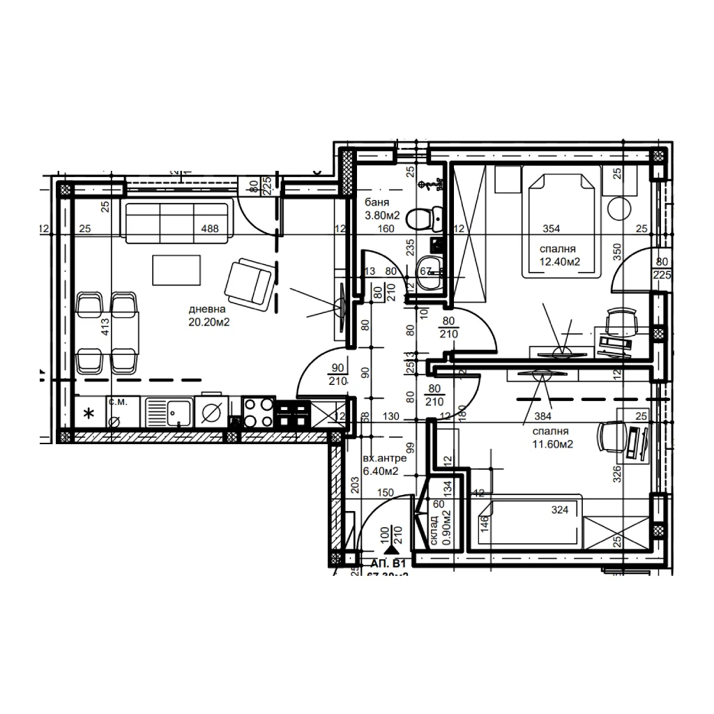 | Апартамент 1 Б | Б | Тристаен | 67.30 кв.м. | кв.м. | кв.м. | Свободен | ||