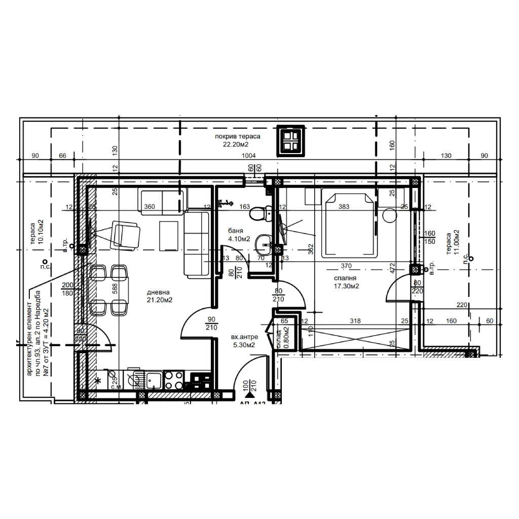 | Апартамент 12 А | А | Двустаен | 80.80 кв.м. | кв.м. | кв.м. | 43.30 кв.м. | Свободен | |